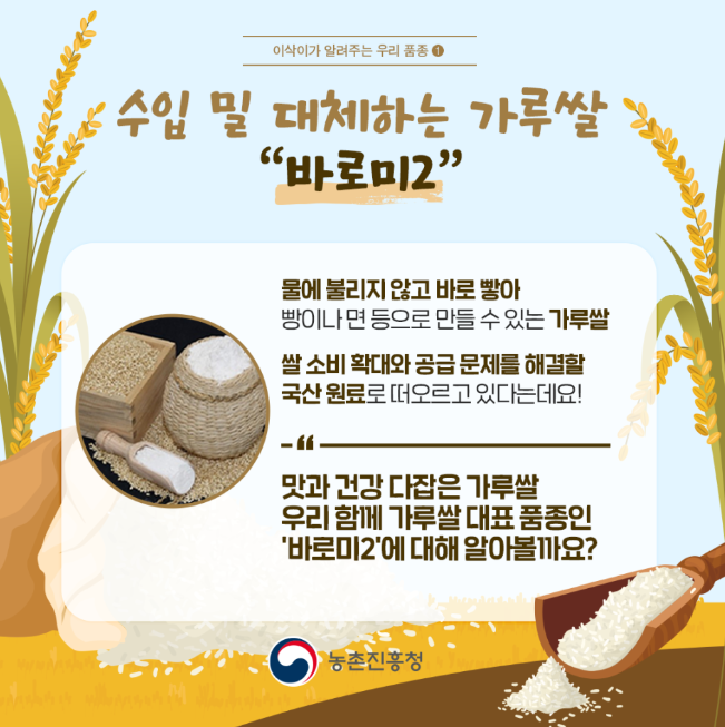 그럼 여기까지 가루쌀 '바로미2' 밀가루 대체 가능한 우리 쌀에 대해 알아보았습니다.