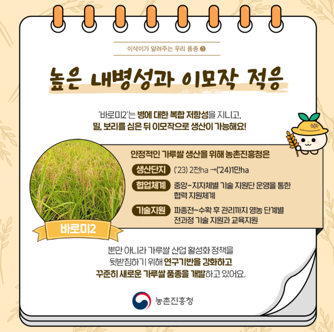 높은 내병성과 이모작 적응하는 '바로미2'