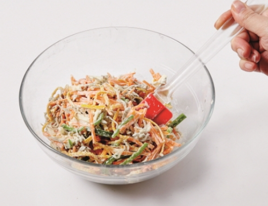 2. 감자와 당근, 피망은 짧게 채 썰어줍니다.