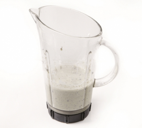 3. 믹서에 물 2/3컵과 불린 콩을 넣어 곱게 갈아줍니다.