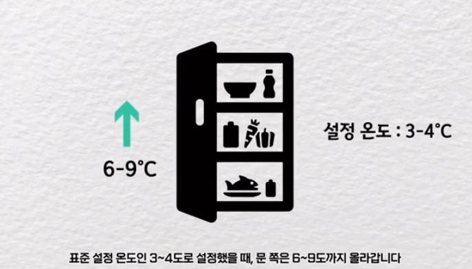 표준 설정 온도인 3~4도로 설정했을 때, 문 쪽은 6~9도까지 올라갑니다.