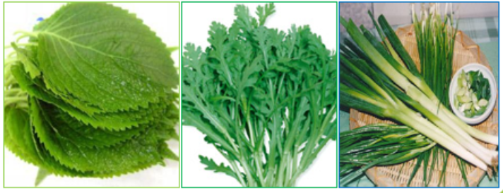 녹황색 채소, 야채샐러드, 해초, 마늘, 부추, 파, 신선한 과일