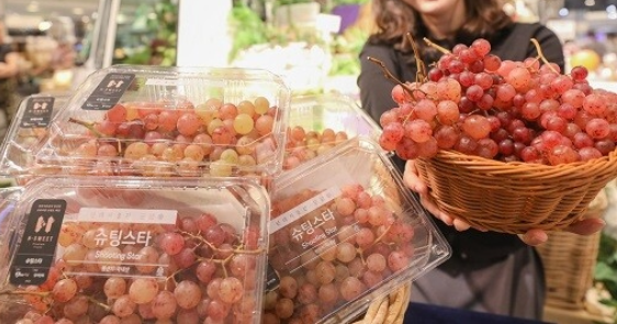 현대백화점은 지난해 8~9월 '슈팅스타'와 '레드 클라렛'을 단독 판매했습니다. 슈팅스타는 농촌진흥청이 20년간 공을 들여 개발한 품종입니다. 이름처럼 달콤한 맛이 터지는 포도입니다. 샤인머스캣처럼 씨가 없어 껍질째 먹을 수 있지만, 당도는 20브릭스로 더 높다고 합니다. 연한 붉은빛입니다.