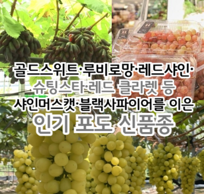 오늘은 골드스위트·루비로망·레드샤인·슈팅스타·레드 클라렛 등 샤인머스캣·블랙사파이어를 이은 인기 포도 신품종들에 대해 알아보겠습니다.