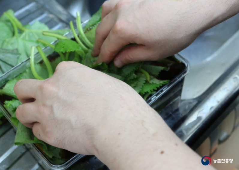 9. 다음날이면 숨도 잘 죽었고, 간장 물도 잘 스며듭니다. 시간이 지날수록 더 진한 맛을 느낄 수 있는 곰취 장아찌, 매일 다른 맛을 볼 수 있습니다.