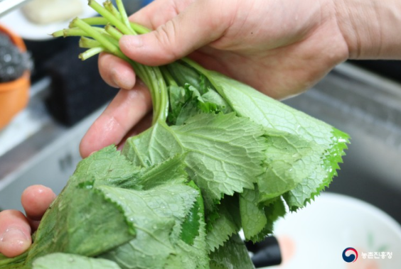 1. 먼저, 흐르는 물에 곰취를 깨끗하게 세척해 줍니다.