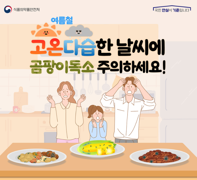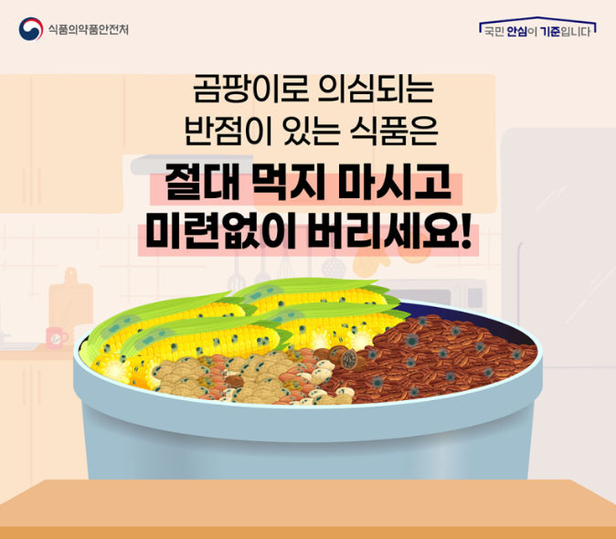 고온다습한 날씨, 퍼져나가는 곰팡이! 곰팡이독소는 열에 강해 조리과정에도 파괴되지 않고, 곰팡이가 생긴 부분을 제거하더라도 눈에 보이지 않는 포자나 독소가 퍼져있을 수 있어 전량 폐기하는 것이 가장 안전하다고 합니다.