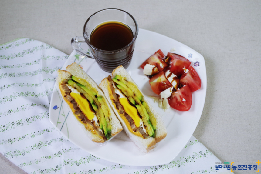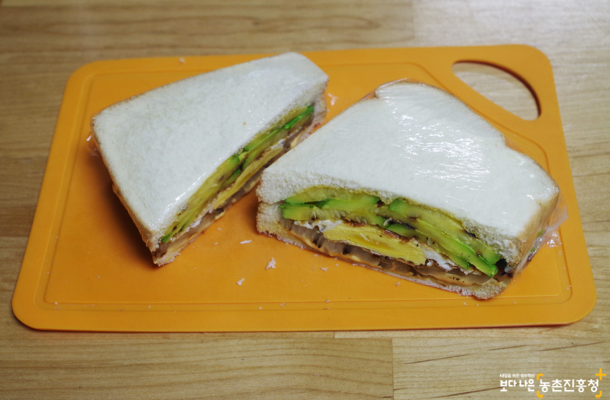 요즘 제철 맞은 애호박으로 밑반찬으로 많이 드셨을 것입니다. 이번 주말은 간단하면서도 든든하게 즐길 수 있는 건강 샌드위치 만들어보시는 것도 추천해 드립니다. 다양한 제철 채소들이 더 곁들여 드셔도 좋습니다.