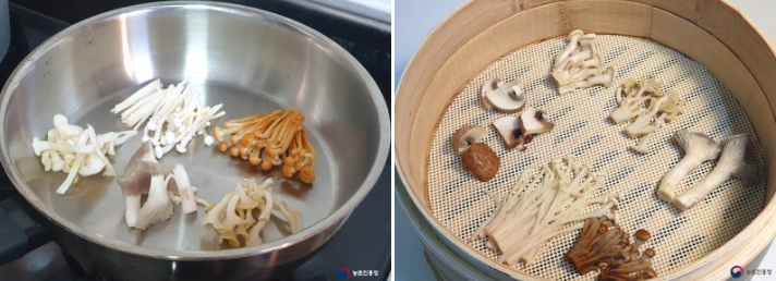 버섯 찌기 : 김이 오른 찜기에 넣고 3분간 쪄줍니다.