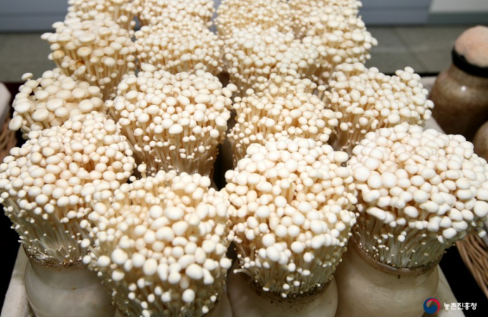 2020년 기준 국내 버섯 수출량의 54.8%가 팽이일 만큼 큰 비중을 차지하고 있습니다. 외국 품종 점유율이 높아 농촌진흥청에서 국산 품종을 개발했다고 합니다.