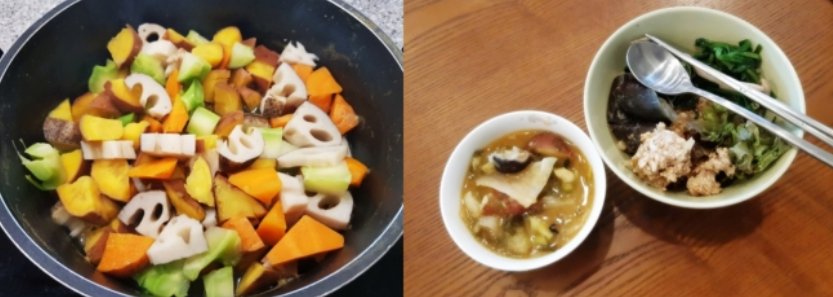 조리과정은 특별한 재료도 음식솜씨도 필요하지 않다고 합니다. 고구마, 양배추, 토마토, 당근, 브로콜리 그리고 과일로는 사과를 넣어주면 된다고 합니다. 계절에 따라 단호박 등을 추가해도 좋다고 합니다. 모든 재료를 잘게 썰은 후 냄비에 넣고 살짝 긇이면 된다고 합니다. 믹서기를 이용할 경우 재료를 넣고 갈아주면 따뜻한 스프가 금세 완성된다고 합니다.