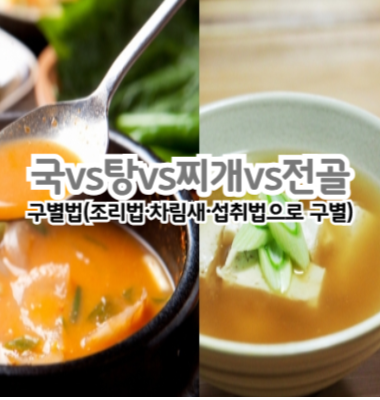 오늘은 국vs탕vs찌개vs전골 구별법(조리법·차림새·섭취법으로 구별)에 대해 알아보겠습니다.
