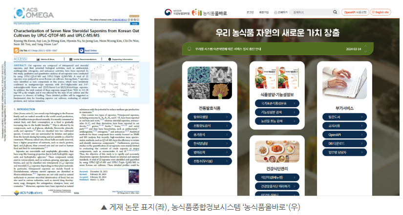 현재 농식품종합정보시스템 '농식품올바로'에서 귀리를 비롯해 다양한 농식품 소재의 사포닌 함량 등 관련 정보를 제공하고 있다고 합니다.