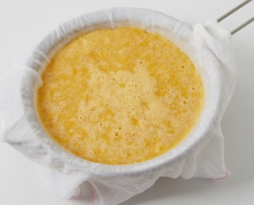 2. 귤 10개는 믹서에 곱게 갈아 젖은 면포에 거릅니다.