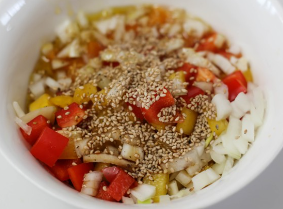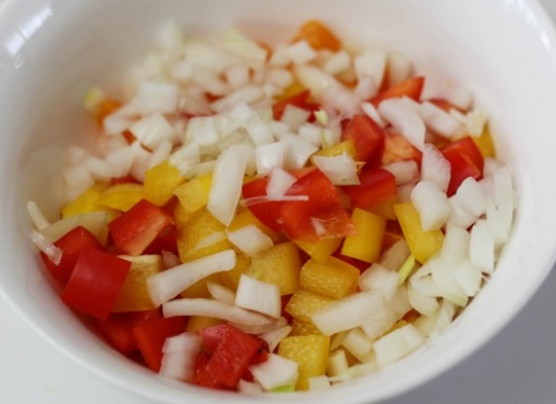 1. 파프리카는 1cm 크기로 썰어주고, 양파는 잘게 다져줍니다.
