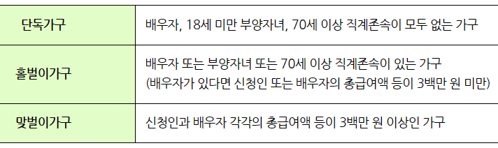 가구원 모두가 소유하고 있는 주택, 토지, 건물, 예금 등 재산 합계액이 2억 4천만 원 미만