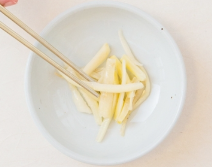 도라지는 쓴 맛이 강하지만, 식초를 넣은 물에 하룻밤 정도 담근 도라지를 소금물로 헹궈 주면 특유의 쓴맛이 덜해집니다. 주로 반찬으로 애용되는 도라지는 달콤한 강정이나 정과, 떡으로도 만들 수 있습니다. 도라지 강정의 경우, 쓴 맛을 제거한 도라지에 튀김옷을 입혀 바삭하게 튀겨낸 후 달콤한 양념에 버무려 먹으면 됩니다.