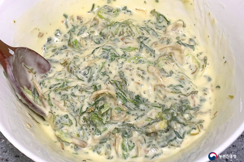 3. 그다음, 잘라둔 냉이를 넣고 고루 섞어줍니다.
