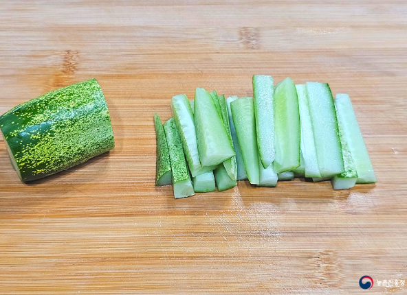 2. 오이 1개도 막대 모양으로 길게 썰어줍니다.