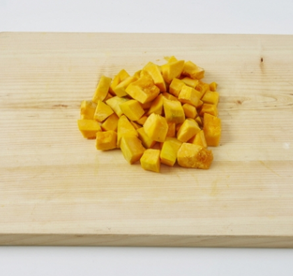1. 단호박은 껍질과 씨를 제거하고 작게 깍둑 썰어줍니다.