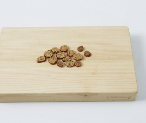 3. 대추는 돌려 깎아 돌돌 말아 납작하게 썰어 꽃모양을 만들어 줍니다.