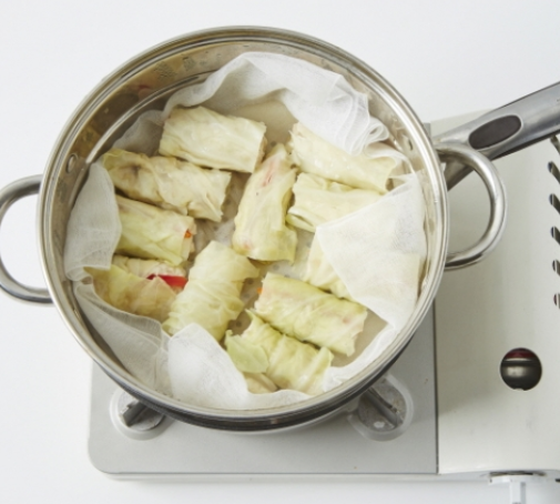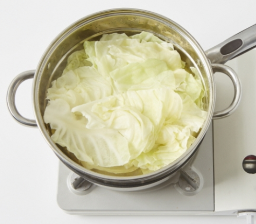 3. 김이 오른 찜기에 양배추를 5분간 찝니다.