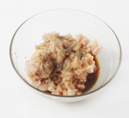 2. 닭가슴살은 다진 뒤 밑간을 합니다.