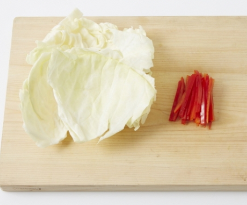 1. 양배추는 씻어서 낱장으로 떼고, 파프리카는 채 썰어줍니다.