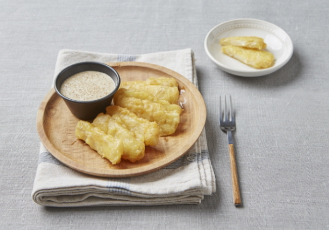 주말 레시피로 리얼푸드에서 소개한 참깨소스를 곁들인 더덕찹쌀튀김을 소개해 드리겠습니다. 더덕튀김에 고소한 참깨소스까지 더해져 맛이 좋다고 합니다.