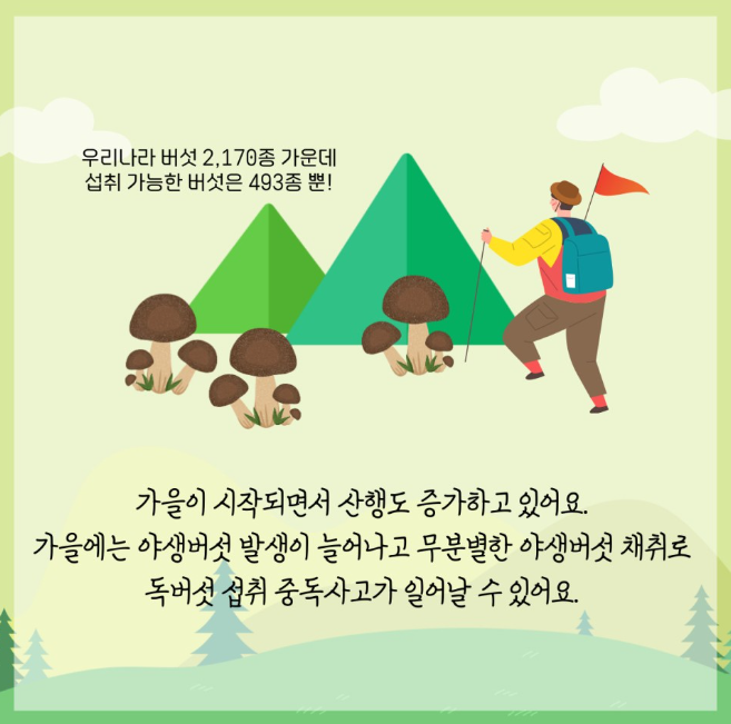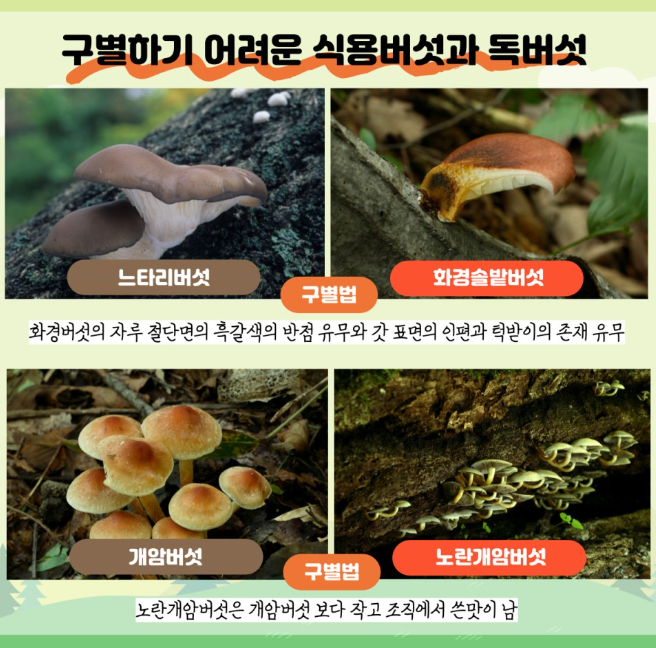 오늘은 독버섯 구별법과 섭취 후 대처법에 대해 소개해 드리겠습니다.
