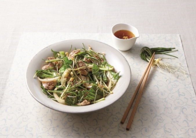 돼지고기 요리에 봄채소를 넣으면 포만감이 느껴지는 한 끼 샐러드가 완성됩니다.