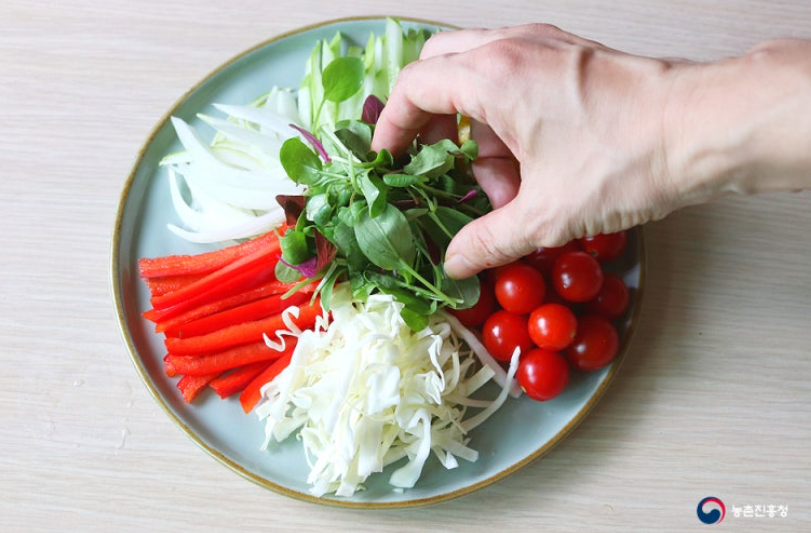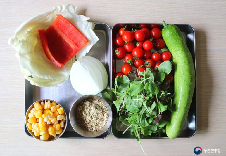 여름철 신선하게 생으로 즐길 수 있는 제철 채소와 냉장고 속 잠들어 있는 채소를 이용해 쉽게 만들면 됩니다.