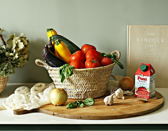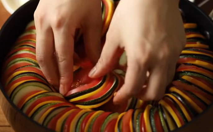 만드는 과정도 복잡하지 않습니다. 우선 가지, 호박, 토마토 등 알록달록 색감의 채소를 동글동글하게 자릅니다. 토마토소스와 올리브 오일, 소금, 후춧가루 등으로 간을 맞춥니다. 재료를 오븐에 구워서 만들면 완성이라고 합니다.
