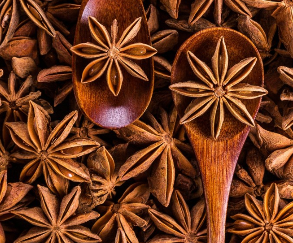 팔각의 원산지는 인도 서부로, 미나리아재비목 붓순나무과에 속하며 이름처럼 여덟 개의 꼭짓점을 가진 별 모양을 하고 있습니다. 영어로는 Star Anise라고 부르는데 비슷한 이름인 아니스와는 전혀 다른 식물입니다. 인도에서 널리 쓰는 가람마살라와 팔각이 들어가며 중국의 고기 요리에도 널리 쓰입니다. 국내에서는 족발이나 보쌈을 삶을 때에도 사용됩니다. 또 재미난 사실은 독감 치료제 타미플루의 재료인 시킴산을 팔각에서 추출하기가 쉬워 타미플루를 제조할 때 팔각이 사용된다고 합니다. 그렇다고 팔각 자체에 감기를 낫게 하는 효능이 있는 것은 아니라고 합니다. 한 가지 주의할 점은 일본이나 제주도에 분포하는 '붓순나무'의 열매는 팔각과 아주 비슷하게 생겼는데 팔각과는 달리 독성이 강해 절대 섭취하지 않도록 해야 한다고 합니다. 붓순나무의 열매가 팔각보다 더 작고 불규칙한 모양새라는 사실로 구분이 가능하다고 합니다.