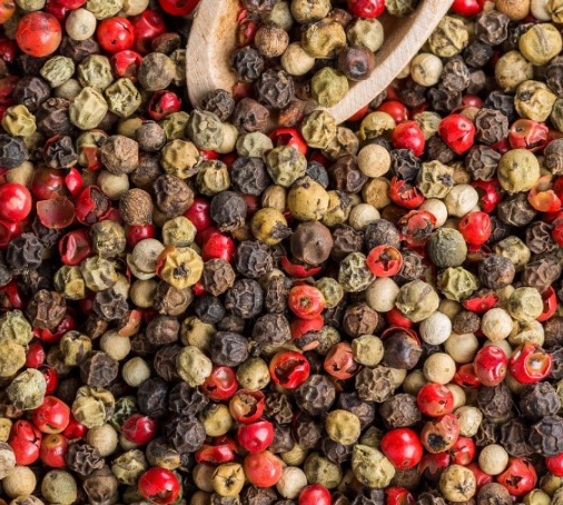 후추는 후추목 후추과의 상록 덩굴식물로 원산지는 인도 남부 해안이라고 합니다. 후추는 원래 가루 형태로 된 모습이 우리에게 익숙했지만 최근에는 통후추의 형태로 꽤 많이 찾아볼 수 있습니다. 얼핏 보면 초피와 비슷하게 생겼지만 그 크기도 맛도 전혀 다르고 분류학적으로도 전혀 다른 식물이라고 합니다. 후추 열매는 원래 고추처럼 녹색이다가 익으면서 붉게 변한다고 합니다. 우리가 흔히 아는 검은 후추는 후추 열매를 다 익기 전에 수확해 말린 것이고, 껍질을 벗기거나 껍질 색이 산화하지 않도록 동결건조를 하거나 과숙된 후에 수확하여 말리는 등 다른 방식으로 가공하면 백후추나 녹색 후추, 적후추를 얻을 수 있다고 합니다. 각각 풍미가 달라 여러 종류의 후추를 섞어 사용하기도 한다고 합니다.