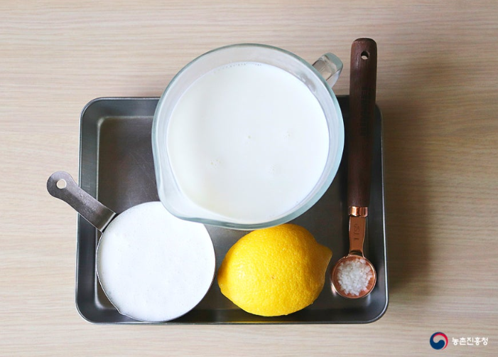 우유 2컵, 생크림 1컵, 레몬 1개, 소금 3/4작은술