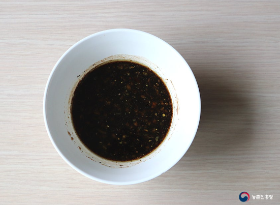 3. 볼에 발사믹드레싱 재료(발사믹식초 2큰술, 올리브오일 1큰술, 다진마늘 1작은술, 소금 1/2작은술, 후춧가루 약간)를 넣고 고루 섞어줍니다.