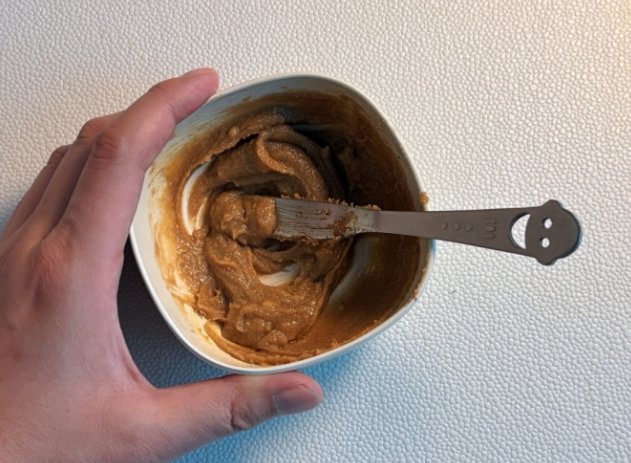 4. 작은 볼에 실온에 둔 버터, 설탕, 시나몬가루, 바닐라빈을 넣어 잘 섞어줍니다.