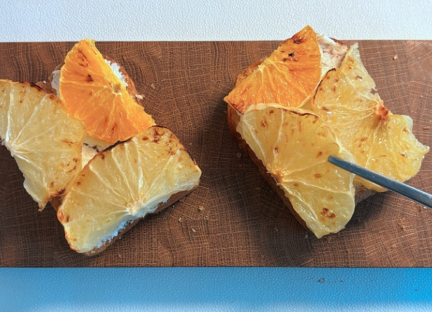 오늘은 오픈 토스트 형태의 '메로골드 리코타치즈 토스트' 만드는 방법을 소개해 드리겠습니다. 시트러스 과일을 오븐에 구워 달콤함을 끌어올린 후 부드러운 브리오슈 위에 스프레드를 바른 메뉴입니다.
