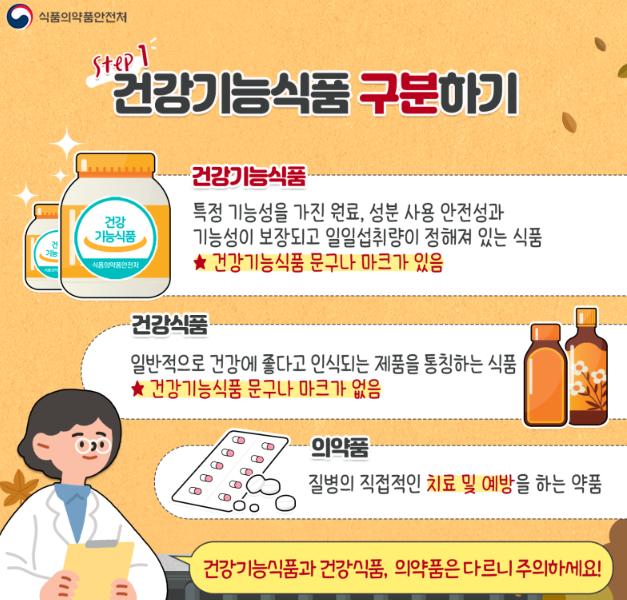 건강기능식품과 건강식품, 의약품은 다르니 주의하세요!