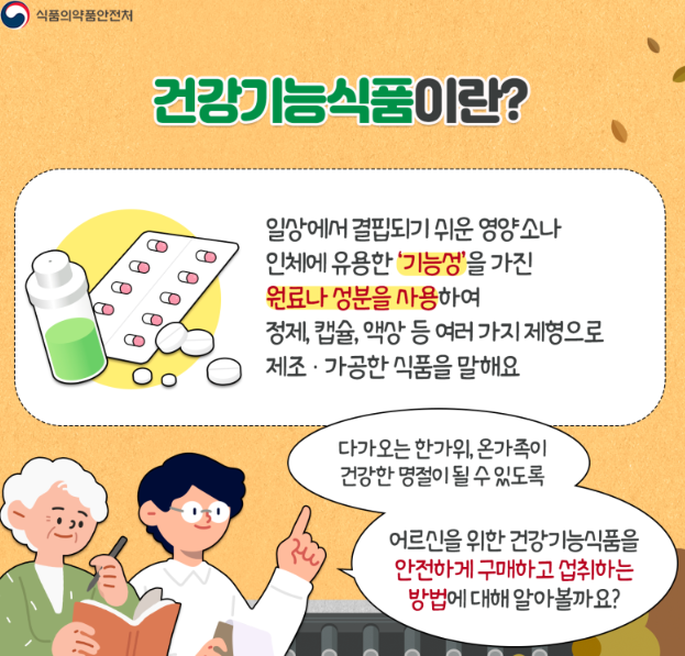 다가오는 한가위,온가족이 건강한 명절이 될 수 있도록 어르신을 위한 건강기능식품을 안전하게 구매하고 섭취하는 방법에 대해 알아보겠습니다.