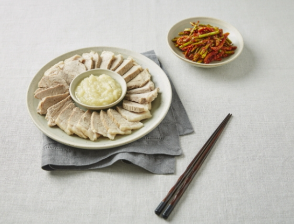 마늘은 야들야들한 식감의 수육과도 잘 어울립니다. 흔히 수육에는 보쌈김치를 주로 곁들여 먹지만, 마늘 소스를 이용하면 잡내 제거에도 좋으며, 감칠맛이 더욱 살아납니다.