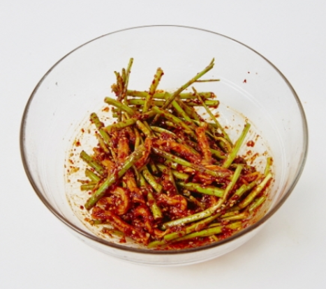 다진 대파 2큰술, 다진 마늘 0.7큰술, 설탕 1.3큰술, 고춧가루 3큰술, 간장 2큰술, 까나리액젓 1큰술 참기름 2큰술, 참깨 1큰술