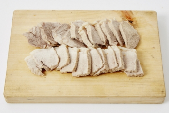 2. 다시 한 번 끓어오르면 중약 불로 줄이고 30분 정도 삶아 고기가 익으면 건져 먹기 좋게 썰어줍니다.