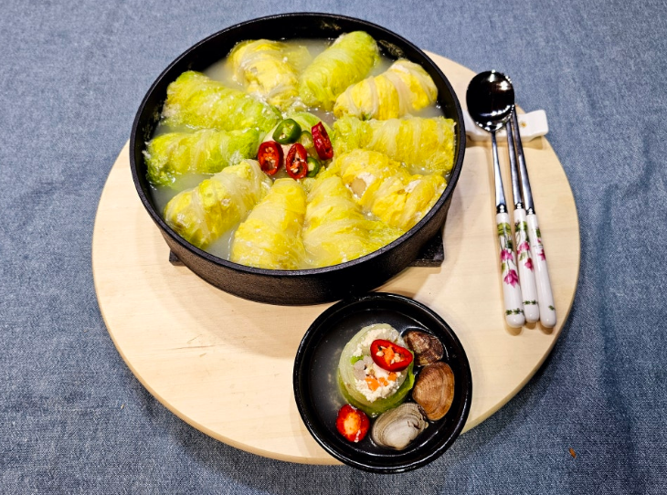 배추에는 식이섬유가 많아 변비에 좋고 뼈에 좋은 칼슘과 비타민이 풍부하게 들어 있어 감기 예방과 면역력 증강에도 효과가 있다고 합니다. 찬 바람이 불고 영하의 날씨 몸이 움츠러드는 겨울에 따뜻한 음식으로 영양 풍부하고 시원하면서 담백한 맛이 나는 배추말이 전골 드셔보시길 추천합니다.