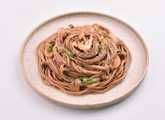 갈색 느티만가닥버섯 1줌(75g), 마늘 3쪽, 청양고추 1개, 메밀면 1인분, 양념장(설탕 0.5T, 맛술 0.5T, 간장 1T, 다진 마늘 1T, 들기름 2T, 후춧가루 약간)