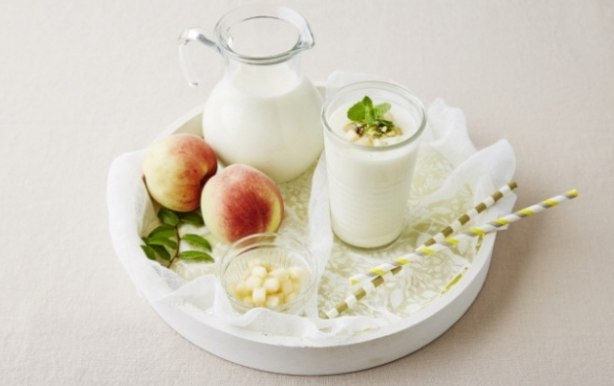 그래서 오늘은 복숭아를 넣은 복숭아 라씨를 만들어 보겠습니다. 복숭아 라씨는 얼음과 함께 갈아서 더욱 시원하게 즐겨도 좋습니다. 생 복숭아를 구하기 어려우면 복숭아 통조림을 사용해도 됩니다.