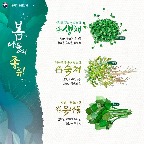 오늘은 향긋한 봄나물 종류에 따른 안전한 조리법을 소개해 드리겠습니다.