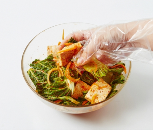 요리 과정에서 봄동은 겉절이처럼 먹기 직전에 버무리는 게 맛있습니다. 또한 두부는 버무릴 때 으깨질 수 있으니 따로 버무린 뒤 섞는 것이 좋습니다.