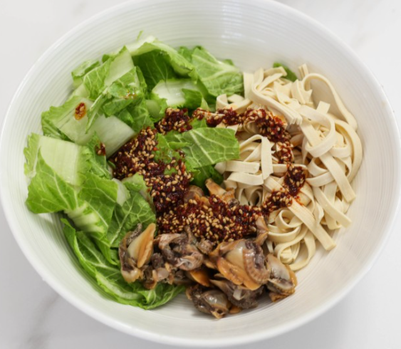 봄동, 꼬막, 두부 면, 양념장(참기름 3큰술, 간장 1큰술, 고춧가루 1/2큰술, 통깨 1큰술)